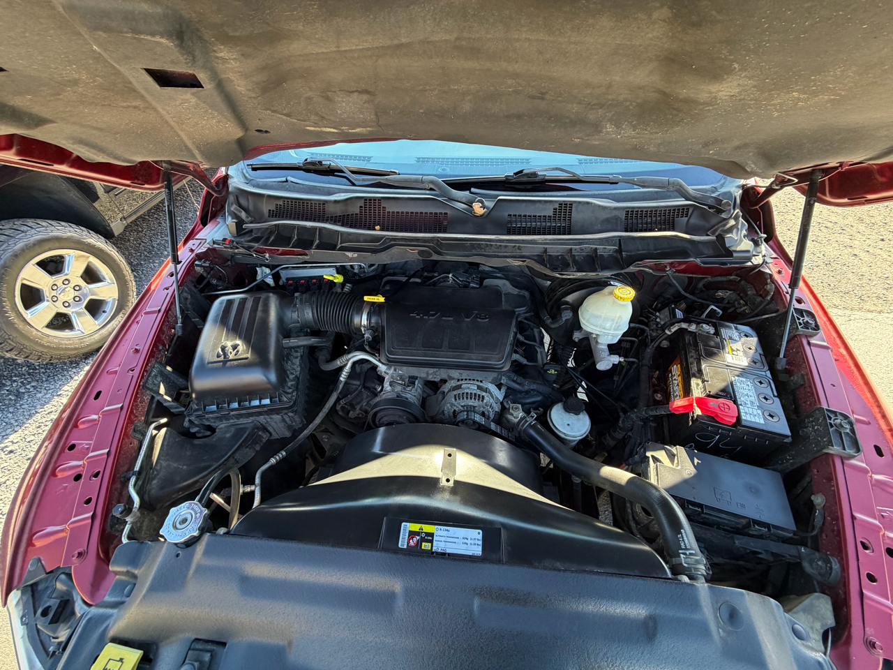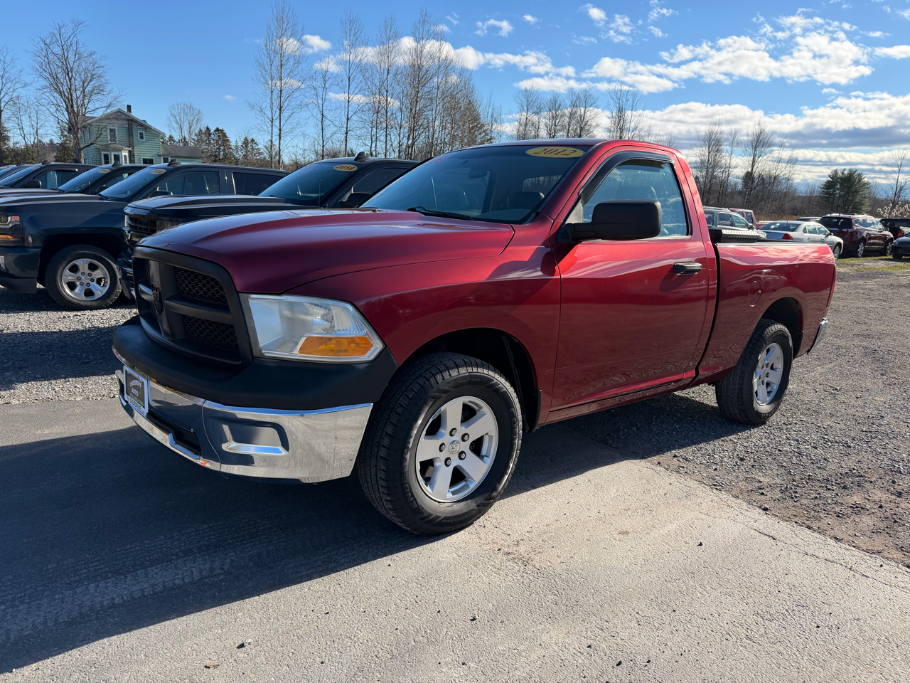 Hop into this vibrant Maroon 2012 RAM 1500 and prepare for an adventure every time you hit the road! With its powerful engine and smooth rear-wheel drive, you'll feel like you're cruising on cloud nine. Whether you're towing a trailer for a weekend getaway or loading up the spacious 6'4" pickup box with gear for a tailgate party, this truck has got you covered. The sturdy body and black accents give off a sleek and rugged vibe, while the cozy interior with air conditioning and Uconnect stereo system ensures you ride in comfort and style. So crank up the tunes on the AM/FM stereo or plug in your mobile device for endless entertainment options. With safety features like anti-lock brakes and airbags, you can drive with peace of mind knowing you're protected. Don't miss out on the opportunity to make memories in this Maroon beauty - it's ready to conquer the open road with you!