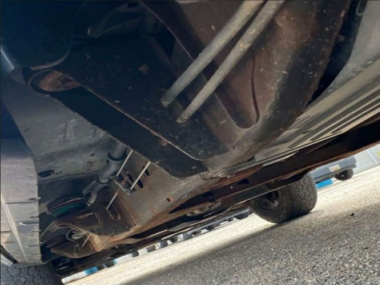 • Tire carrier, outside spare, winch-type mounted under frame at rear